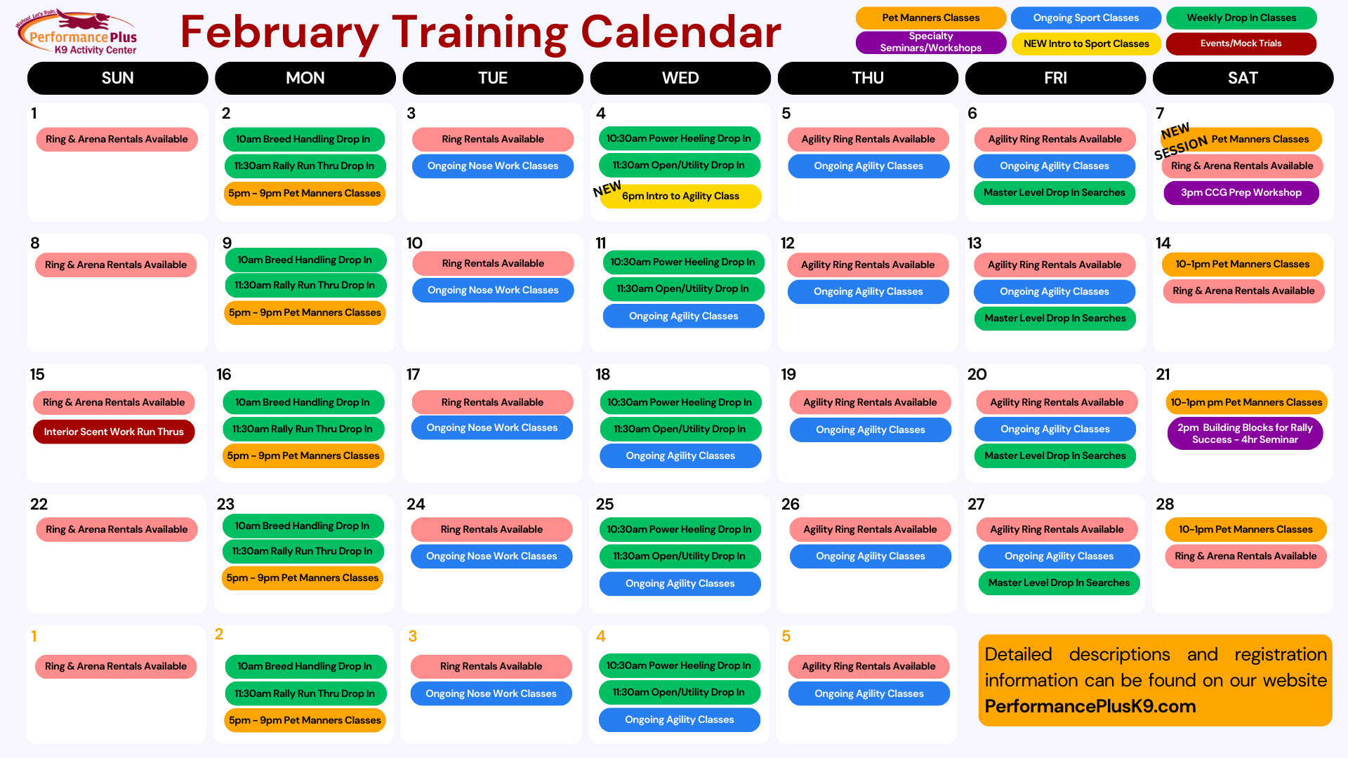🌟 Monday Mornings at Performance Plus K9! 🌟 Start your week off right with two fun ways to train and practice: 🐾 10:00 AM – Drop-In Breed HandlingPerfect for beginners or advanced handlers looking to polish their skills. Work on stacking, gaiting, and ring etiquette in a relaxed, supportive environment. $12/dog 🎉 11:30 AM – […]