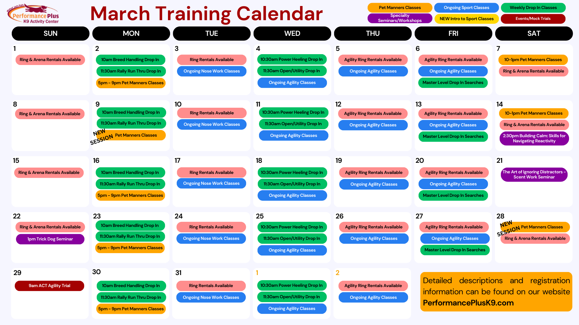 🌟 Monday Mornings at Performance Plus K9! 🌟 Start your week off right with two fun ways to train and practice: 🐾 10:00 AM – Drop-In Breed HandlingPerfect for beginners or advanced handlers looking to polish their skills. Work on stacking, gaiting, and ring etiquette in a relaxed, supportive environment. $12/dog 🎉 11:30 AM – […]